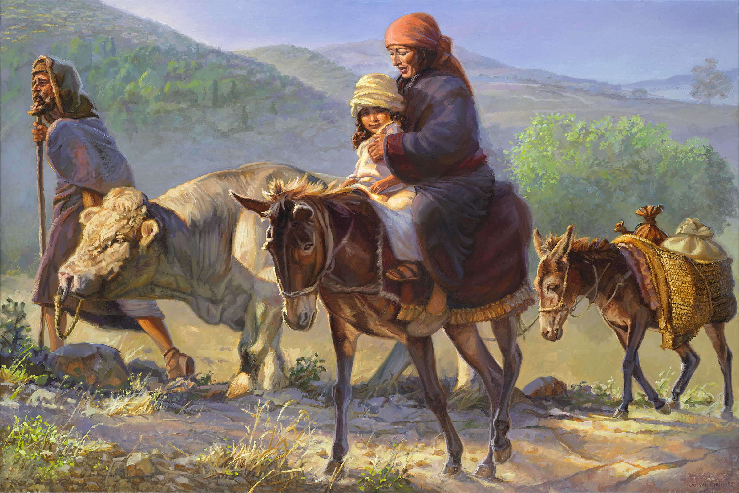 Het schilderij toont Hanna en Elkana, die met Samuel opgaan naar de tempel in Silo. De eerste jaren van zijn leven werd hij gezoogd door Hanna. Nu wordt hij – naar Hanna’s gelofte dat zij hem aan de HEERE zou overgeven – ‘voor het aangezicht van de HEERE gebracht om daar voor eeuwig te blijven’. Zie 1 Samuel 1 vers 22.