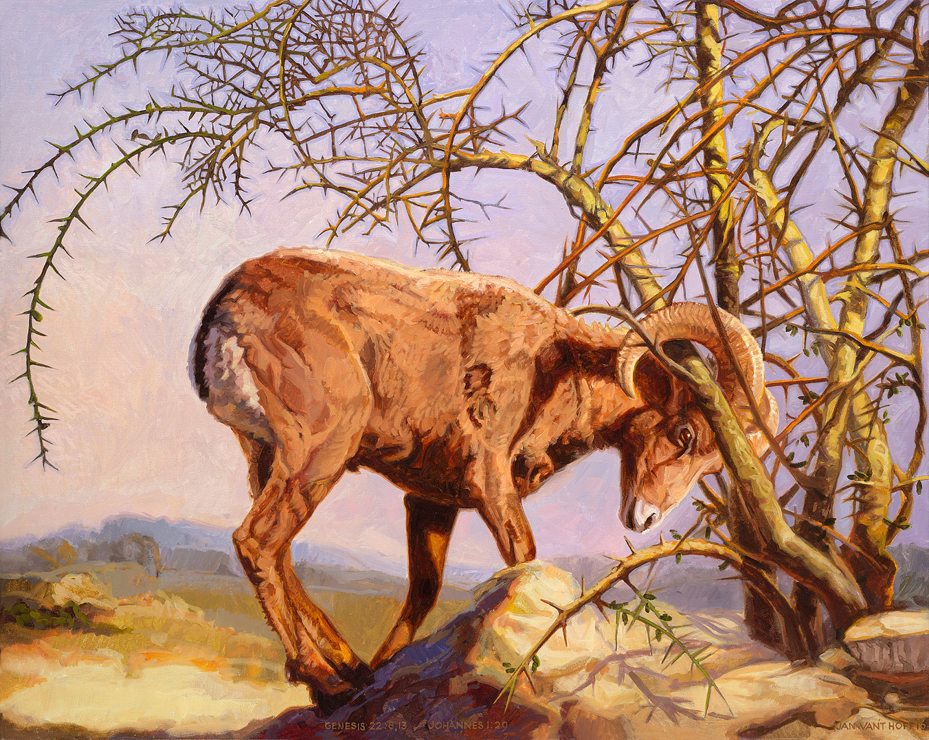 De ram verwijst naar het offer van Jezus, waarin God heeft voorzien.